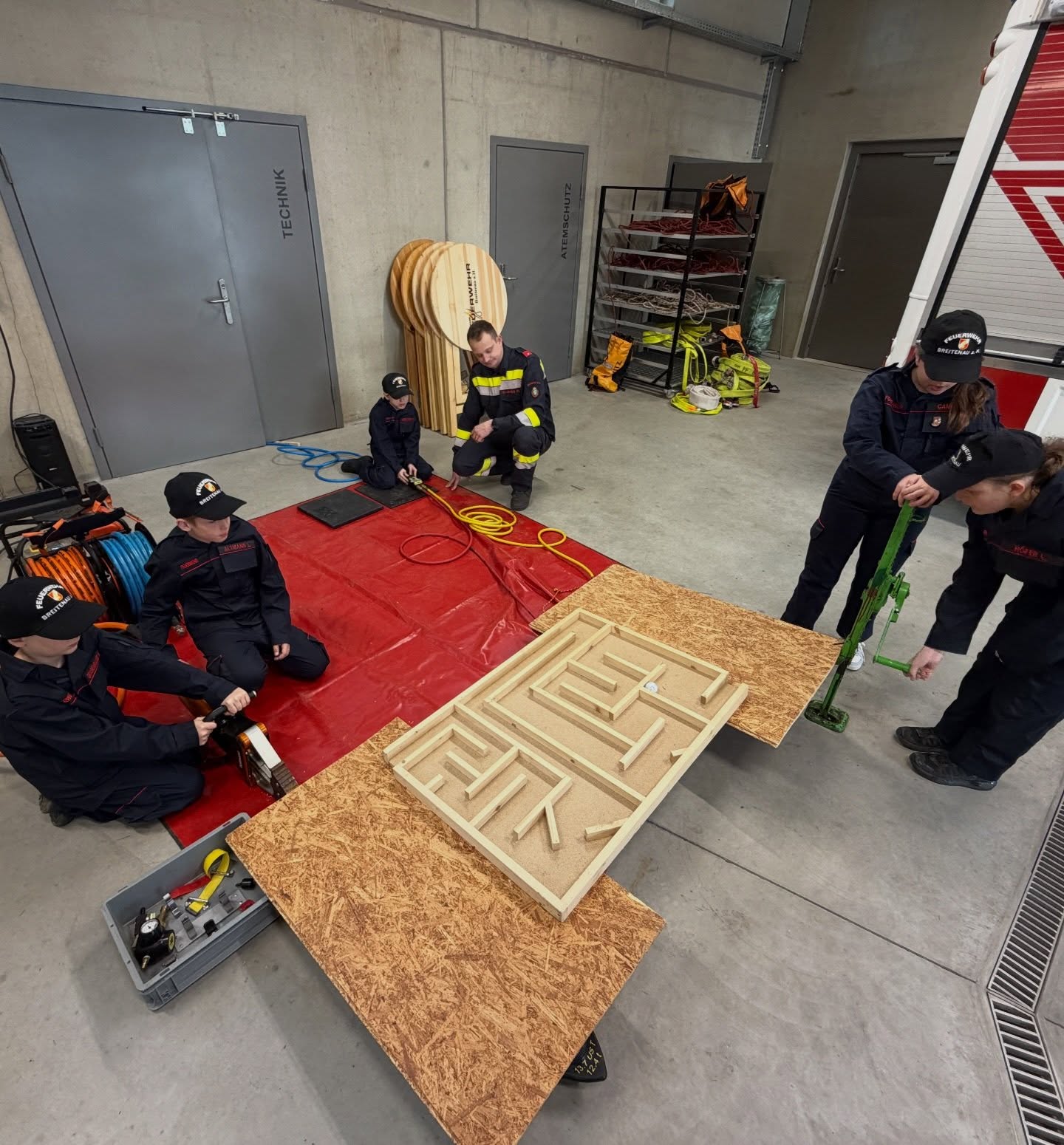 Am Programm stand Erste Hilfe mit Reanimation und dem Versorgen von Verletzungen sowie eine Teamaufgabe in der Fahrzeughalle. Dabei versuchten die Kinder, mit Hebekissen und Spreizer einen Ball durch ein Hindernis zu bringen – mit vollem Erfolg!