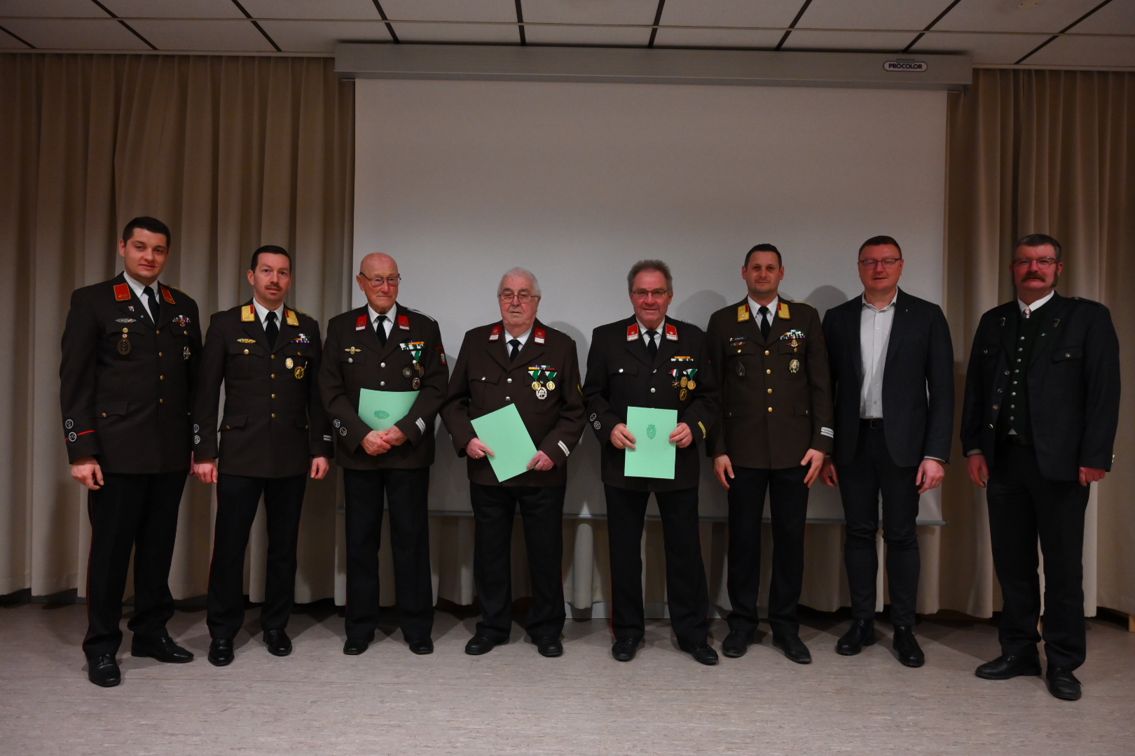 Der Kommandant ABI Philipp Sitka konnte u.a. mit Bürgermeister Martin Pretterhofer, Gemeindekassier Martin Bodos, ABI Wolfgang Trobos und dem Kommando der BTF Veitsch Radex viele Ehrengäste begrüßen.